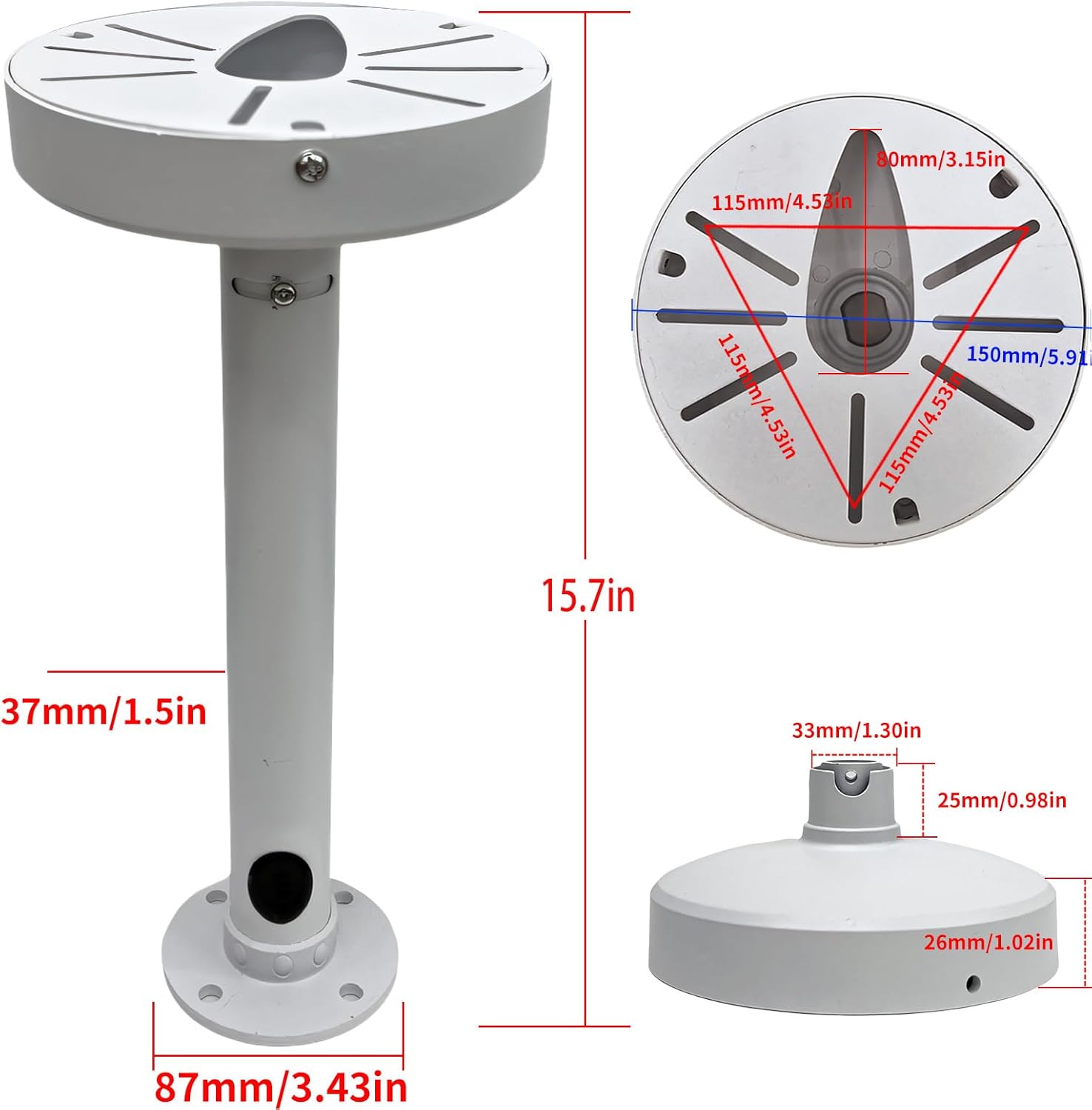 Use this multifunctional indoor/outdoor camera stand to enhance your security system. This 6-inch hemispherical docking bracket, ceiling mounting bracket is made of durable metal and is wall mounted for indoor and outdoor safety cameras. The junction box is designed to seamlessly manage cables, ensuring clean and orderly installation. Whether you need to monitor your property or your commercial premises, this installation bracket can provide a reliable solution. Adjust the angle and position. Upgrade your surveillance settings with this high-quality camera stand.