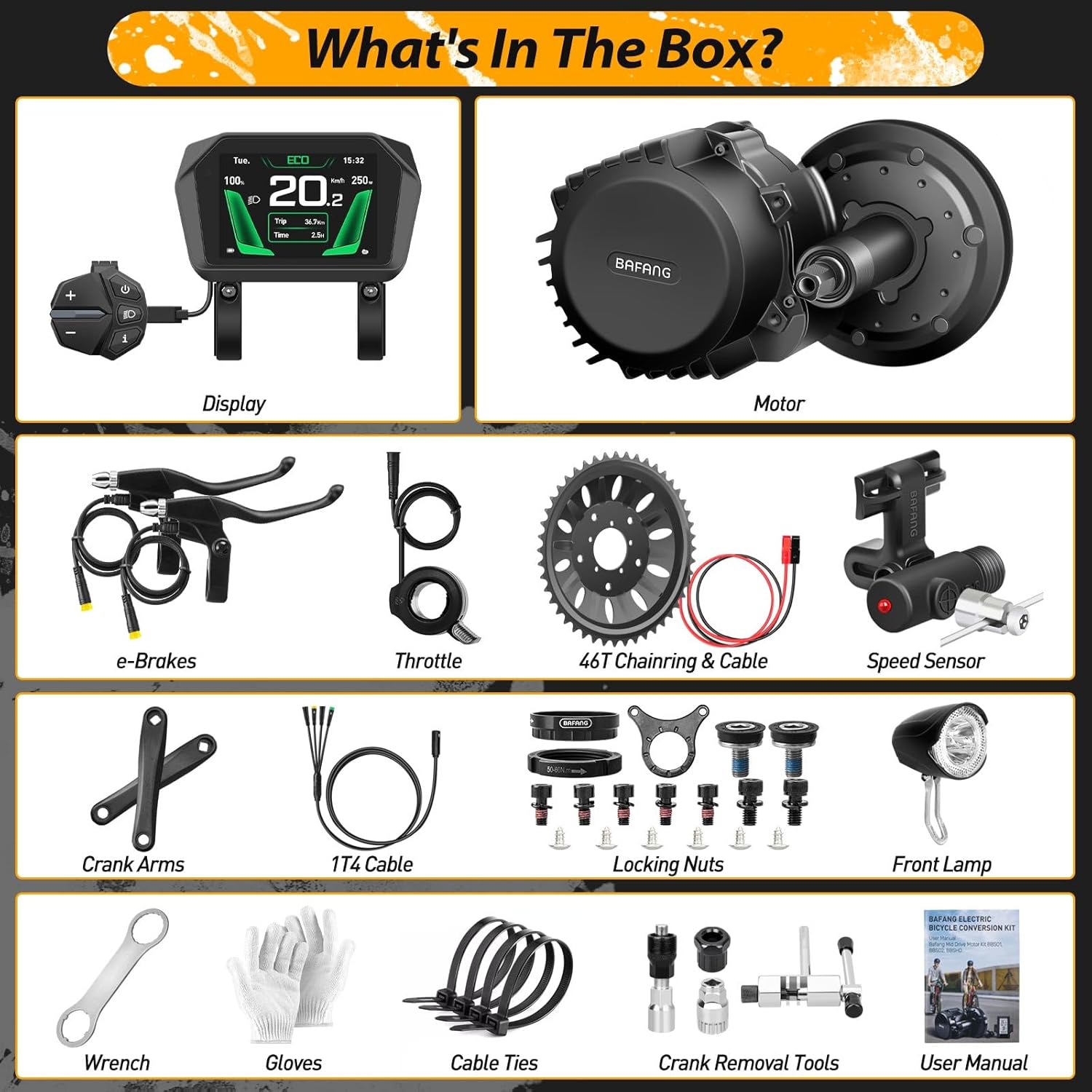 | Model Number | eBIKE-KIT-G320-48V-1000W-46T-A1-19.2Ah |