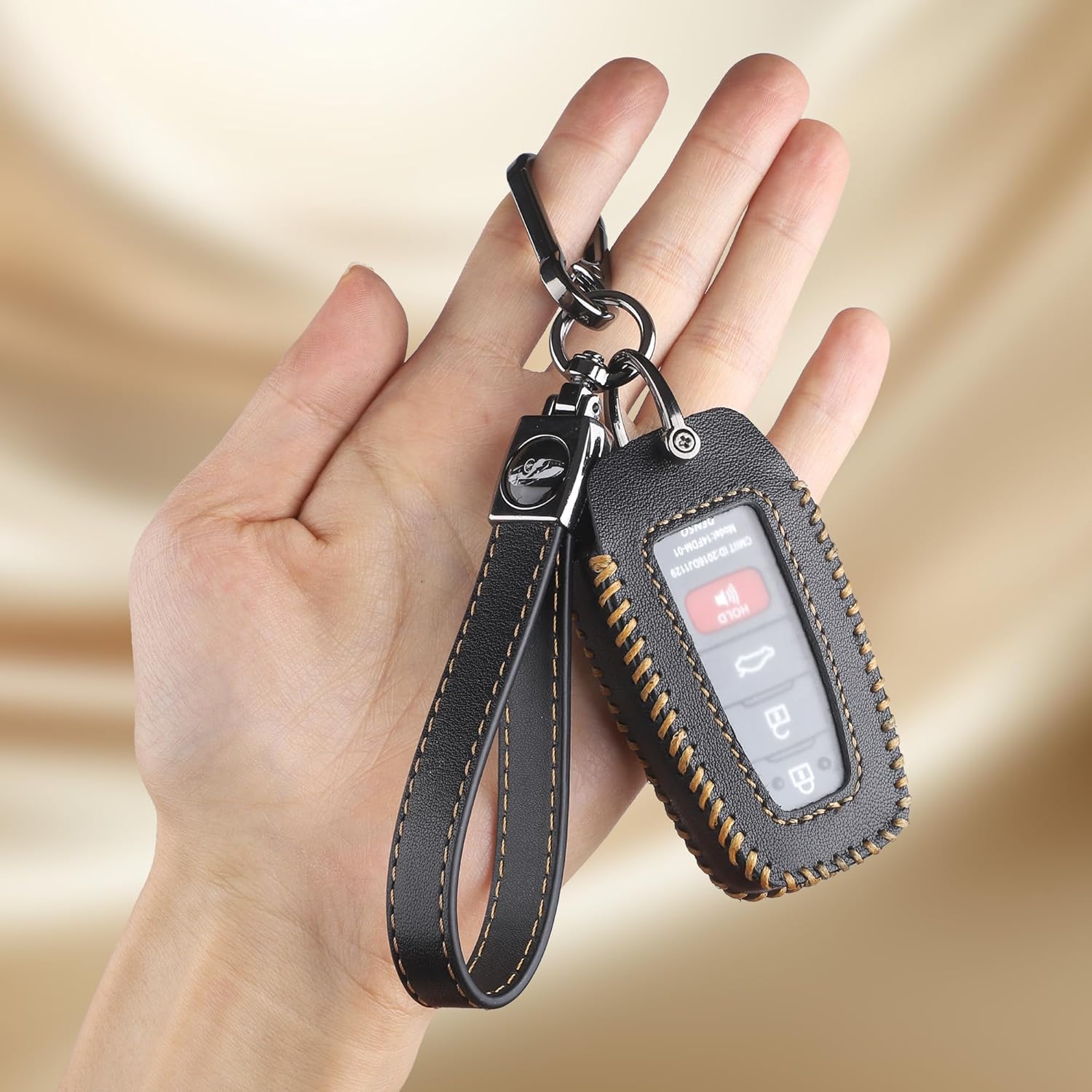 Fits Model: Compatible with Toyota 2020-2024 Highlander (No fit Highlander Grand), 2019-2024 RAV4 (Not Fit Rav4 Prime), 2018-2024 Camry, 2019-2024 Corolla (Not fit Corolla Cross), 2017-2024 Prius (Not Fit 2024 Prius Prime), 2019-2024 Avalon, 2017-2024 C-HR, 2022-2024 4Runner, 2021-2024 Prado, 2018-2024 GT86 (only keyless go). NOTE: Please refer to the matching keys shown on the picture.Because of the different years even if the same car model,the key fob may also be different.Material And Workmanship:It is made of high-quality leather, pure hand sewing, comfortable fashionable, novel, durable and feel good. Make your key look brand new and high quality, and better identify your car key.and does not affect the distant control signal.Easy to Use: with Transparent Soft TPU buttons protection flim, you don't need to remove the key protector can easily press the button.Worry free after sale: Unconditionally refund or free replace if any defective or quality problems any problem ,please feel free to contact us, we offer life-time friendly customer service.