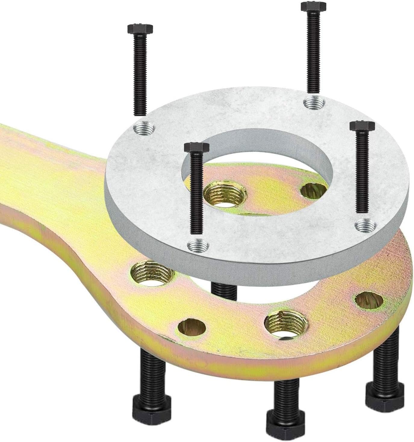 This Crank Pulley Tool Holder Kit provides automotive enthusiasts and professional mechanics with a reliable solution for harmonic balancer removal and installation tasks. Constructed from durable iron, the tool set is built to withstand the demands of regular automotive repair work. The design facilitates easy assembly on vehicle harmonic balancers, working seamlessly with your existing ratchet, socket, and extension pipe to simplify disassembly processes. Specification:Size Chart:55cmx10.6cmx3.5cm/21.65inchx4.17inchx1.38inchPackage Includes:1 Set of Crank Pulley Tool Kit Screw Wrench HolderNote:Please allow slightly errors 1-2cm differences due to manual measurement.