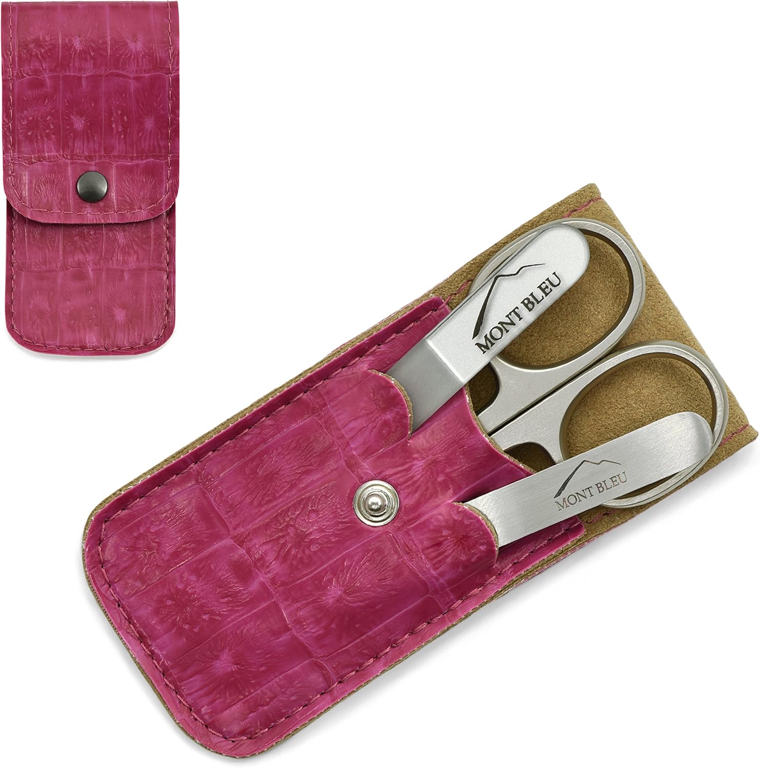 3-Piece Manicure Set made by Mont Bleu with crystal nail fileA good companion wherever you go. Mon Bleu manicure kits have a good reputation worldwide. These sets are functional and durable, at home or when traveling.Contents:Nail scissors - sharp and precise, suitable for finger or toe nails, Made of Nickel-plated SteelTweezers - slant end will catch even the smallest hairs, Made of Stainless SteelCrystal nail file - handmade of tempered glass in Czech Republic, perfect for taking care of your nailsCase:Faux-leather (leatherette), cruelty free, made in Germany Size ca. 110 x 55 mmGift idea:Manicure sets are ideal gifts for him and her, or to take on your trips and journeysMont Bleu:A manufacturer of crystal nail files has almost 15 years’ experience in keeping the quality bar on highest level of customer satisfaction. Mont Bleu manicure sets are a combination of latest technology and renowned craftsmanship.