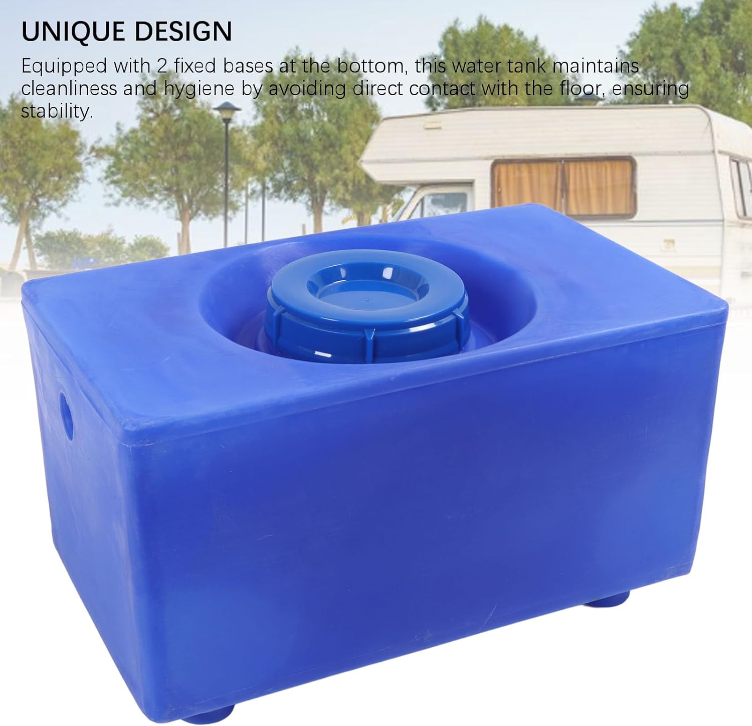 [STURDY STRUCTURE] Made of LLDPE material, this water tank meets food grade standards and is shockproof, impact, heat, and cold , suitable for temperatures -40 to 80 degrees Celsius.[LEAKPROOF AND PORTABLE] Constructed with integral technology, this water tank is seamless and airtight, preventing leaks and breakage. Its square design allows for easy storage and handling.[CUSTOMIZED OPENING MODIFICATIONS] The smooth exterior allows for customization with holes at any desired location, adapting to various vehicle compartments or applications.[UNIQUE DESIGN] Equipped with 2 fixed bases at the bottom, this water tank maintains cleanliness and by avoiding direct contact with the floor, ensuring stability.[9 GALLON CAPACITY] Features a wide inlet with a double layer seal for easy and quick water refilling. Capable of storing 9 gallons of drinking water, providing clean water for daily use, even during outdoor camping.Spec:Item Type: RV Water TankMaterial: Food Grade LLDPECapacity: 9 Gallon / 35 LitersSize: Approx. 505x300x250mm/19.88x11.81x9.84inFeatures: Seamless integral construction, smooth interior and exteriorUsage: Suitable for vehicle water storage, equipment liquid storage, hydroponic grow box, etc.Application: For RVs, trailers, outdoor camping vehicles, boats, yachtsPackage List:1 x Water TankNote: