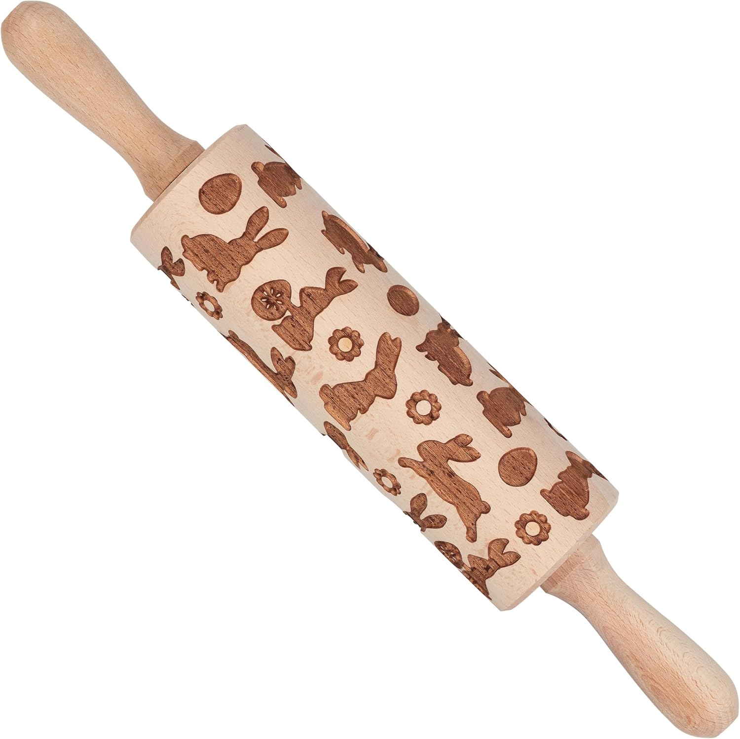 The revolving action allows for effortless and precise rolling making it easy to create intricate bunny designs on your pastries and biscuits. The rolling pin features an engraved pattern that repeats whilst rolling ensuring consistent and professional results every time. Perfect for spring baking! Crafted from FSC Beechwood this rolling pin not only delivers exceptional performance but also prioritises sustainability. FSC certification guarantees responsible and environmentally friendly sourcing of the wood making it an ethical choice for conscious consumers.