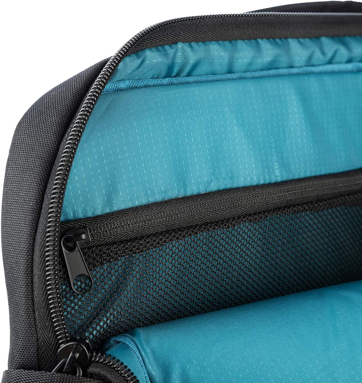 Slim, lightweight bag, made of durable recycled fabric, fits 15.6'' laptops and 16'' MacBooks. Padded internal laptop compartment with zipped mesh pocket. Front pocket for smartphones and accessories. Adjustable, non-removable shoulder strap.